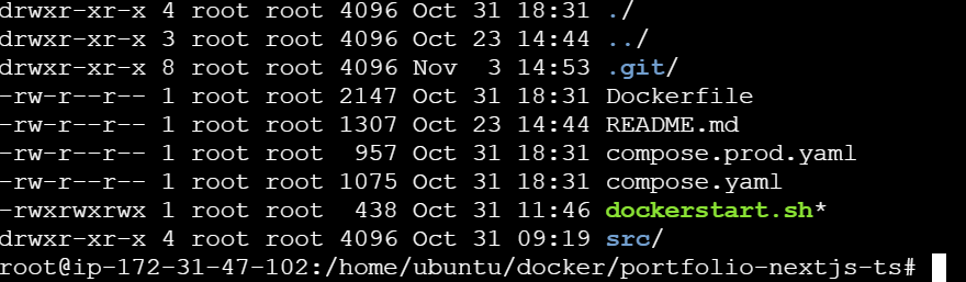pushしたものをcloneしました ここで自作の起動シェルスクリプト(dockerstart.sh)を実行してWebサーバー立ち上げでうす。